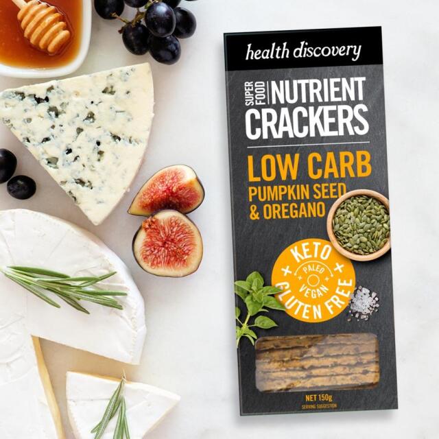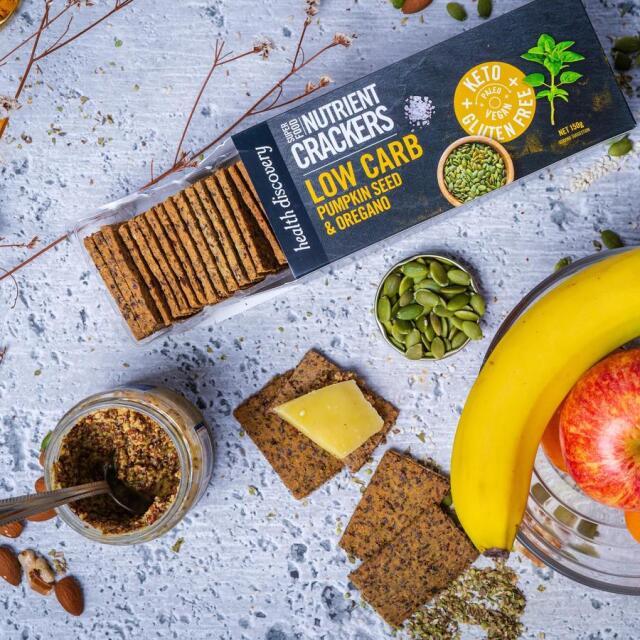 4栄養価の高い3種類(かぼちゃ、亜麻、ごま)の種子が入った、素材の旨味たっぷり&オレガノハーブのアクセントをプラスした無添加の低糖質グルテンフリークラッカー。
