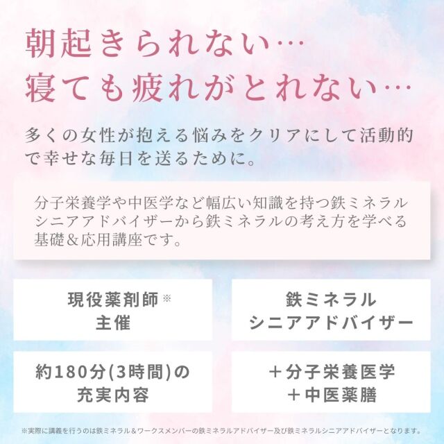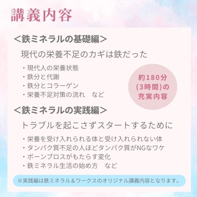 ※実際に講義を行うのは鉄ミネラル&ワークスメンバーの鉄ミネラルアドバイザー及び鉄ミネラルシニアアドバイザーとなります。