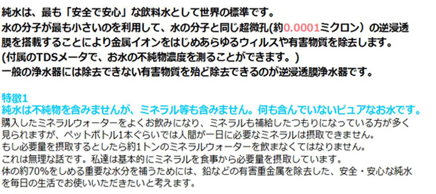 | 新卓上型ミニタイプ 逆浸透膜浄水器 |